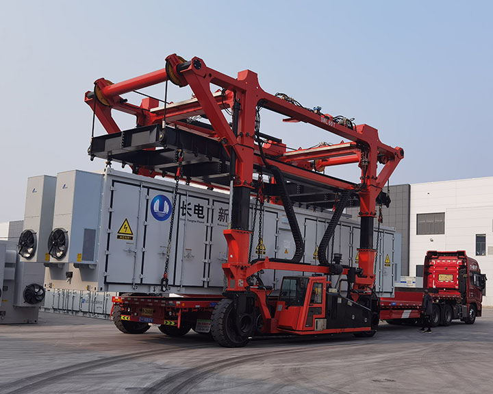 集装箱跨运车是一种专门为集装箱运输和堆放而设计的起重机设备。它有支腿或“跨座”,可以降低或升高以将集装箱从地面抬起,通常用于具有大型存储区域的港口和集装箱码头。
