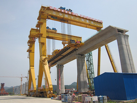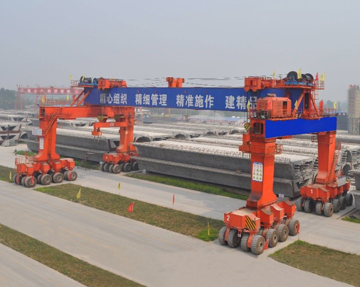 跨运车起重机(又称轮胎式起重机或全地面起重机)是预制场吊运混凝土梁段的核心设备。该设备可根据桥梁工程的规模和复杂度,提供多种跨距和起重量配置,适配长梁、宽梁、重型预制节段等各类构件的吊运需求。