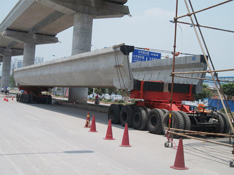 运输车是桥梁建设中用于运输和架设梁段的特种设备。其应用可显著提升大型梁段吊运的效率和安全性,凭借精准的定位和起吊能力,确保桥梁结构的精确组装与对位,从而优化整体施工流程。