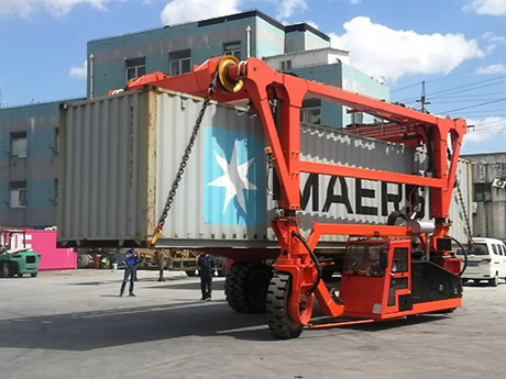 集装箱跨运车是一种专门为集装箱运输和堆放而设计的起重机设备。它有支腿或“跨座”,可以降低或升高以将集装箱从地面抬起,通常用于具有大型存储区域的港口和集装箱码头。