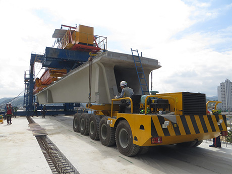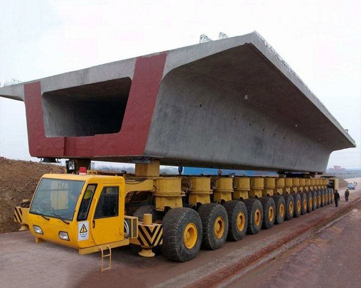 运输车是桥梁建设中用于运输和架设梁段的特种设备。其应用可显著提升大型梁段吊运的效率和安全性,凭借精准的定位和起吊能力,确保桥梁结构的精确组装与对位,从而优化整体施工流程。